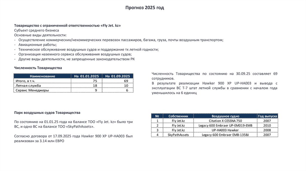 Прогноз 2025 годТоварищество с ограниченной ответственностью «Fly Jet. kz»