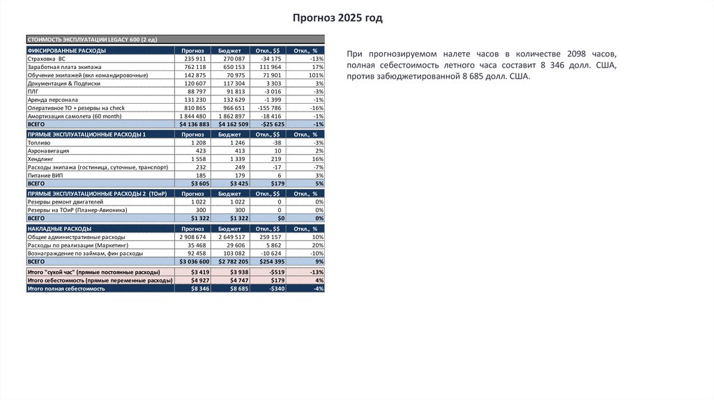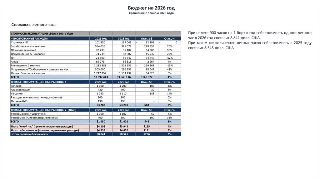 СТОИМОСТЬ ЭКСПЛУАТАЦИИ LEGACY 600, 1 борт