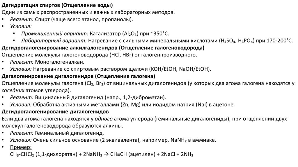 Дегидратация спиртов (Отщепление воды)Один из самых распространенных и важных лабораторных методов.