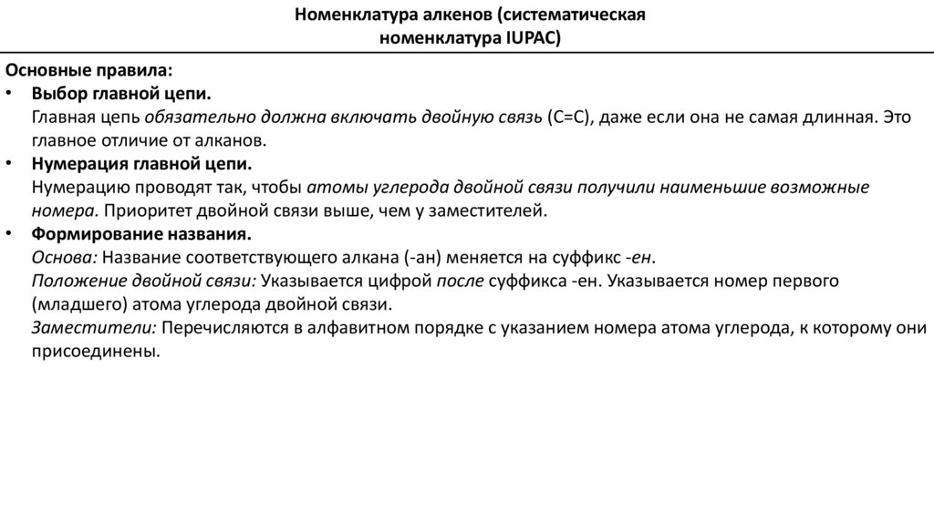 Номенклатура алкенов (систематическаяноменклатура IUPAC)