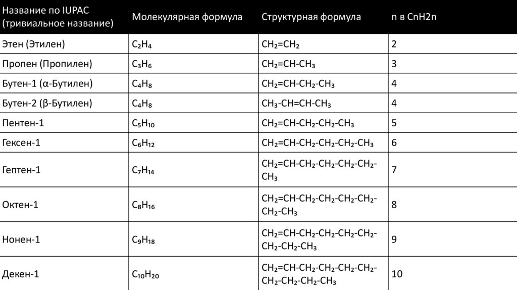 Где n — число атомов углерода в молекуле (n ≥ 2).