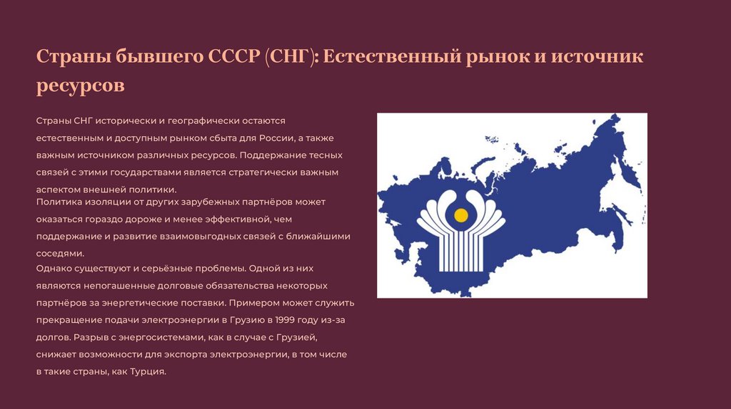Страны бывшего СССР (СНГ): Естественный рынок и источникресурсов