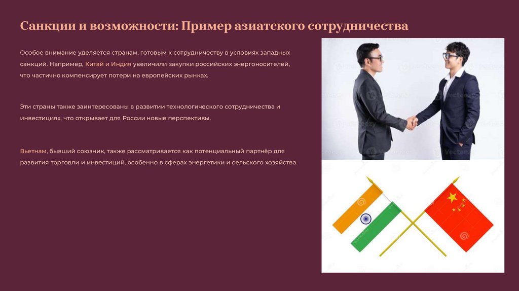 Санкции и возможности: Пример азиатского сотрудничестваОсобое внимание уделяется странам, готовым к сотрудничеству в условиях западных