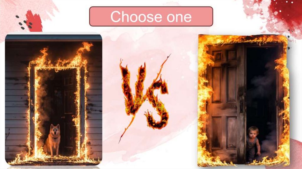 Вы находитесь в доме, охваченном пожаром, передвами 2 двери, в одной из них ваше домашнее