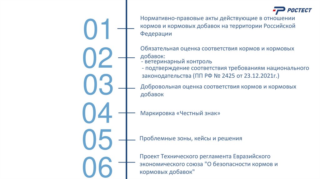 5. Нормативно-правовые акты действующие в отношении кормов и кормовых добавок на территории Российской Федерации