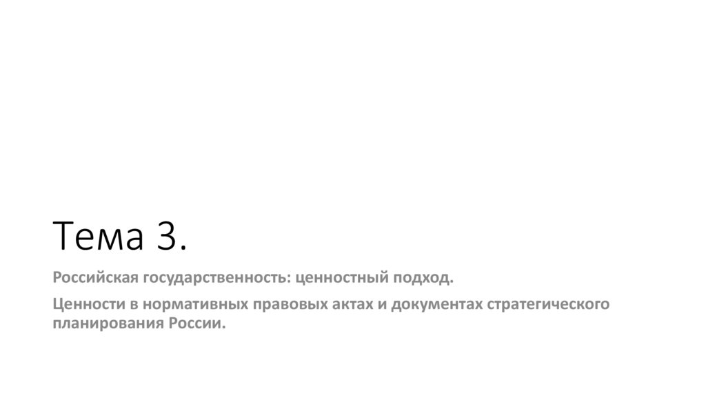 Российская государственность: ценностный подход.Ценности в нормативных правовых актах и документах стратегического