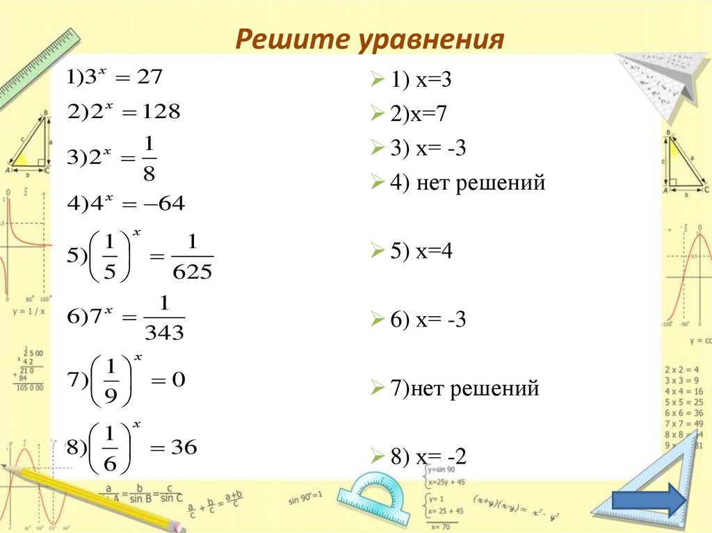 7) Показательная функция с основанием 0<а<1 является убывающей?
