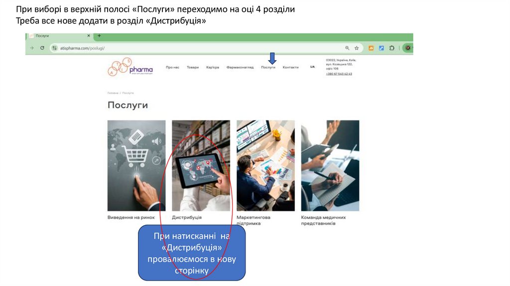 При виборі в верхній полосі «Послуги» переходимо на оці 4 розділиТреба все нове додати в розділ «Дистрибуція»