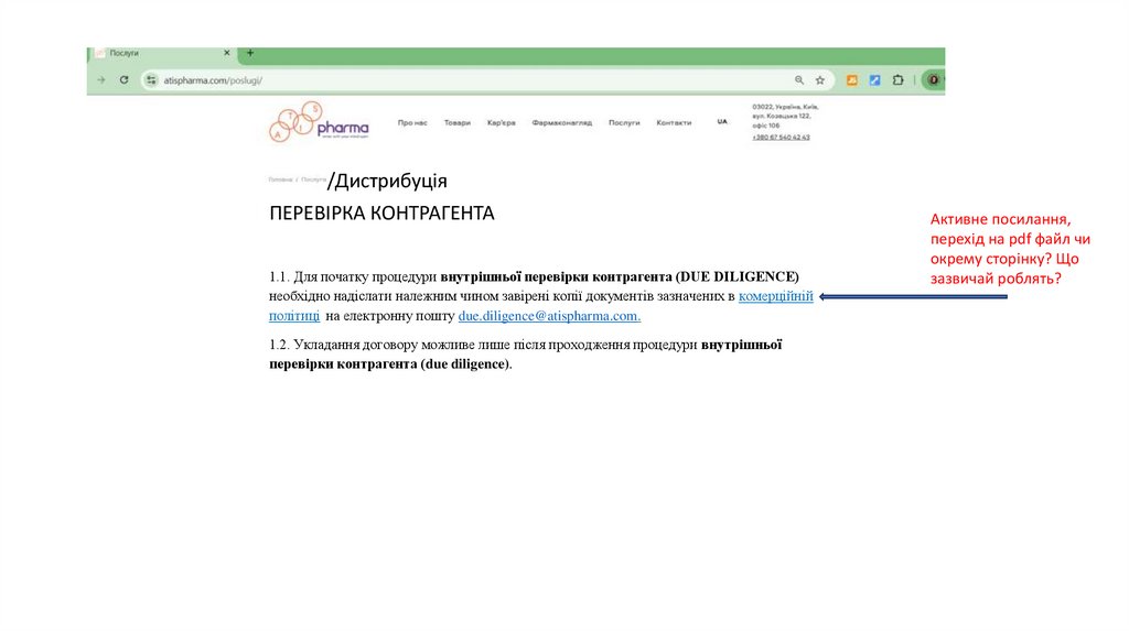 1.1. Для початку процедури внутрішньої перевірки контрагента (DUE DILIGENCE)