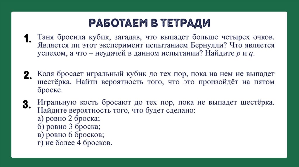 Работаем в тетрадибросила кубик, загадав, что выпадет больше четырех очков.