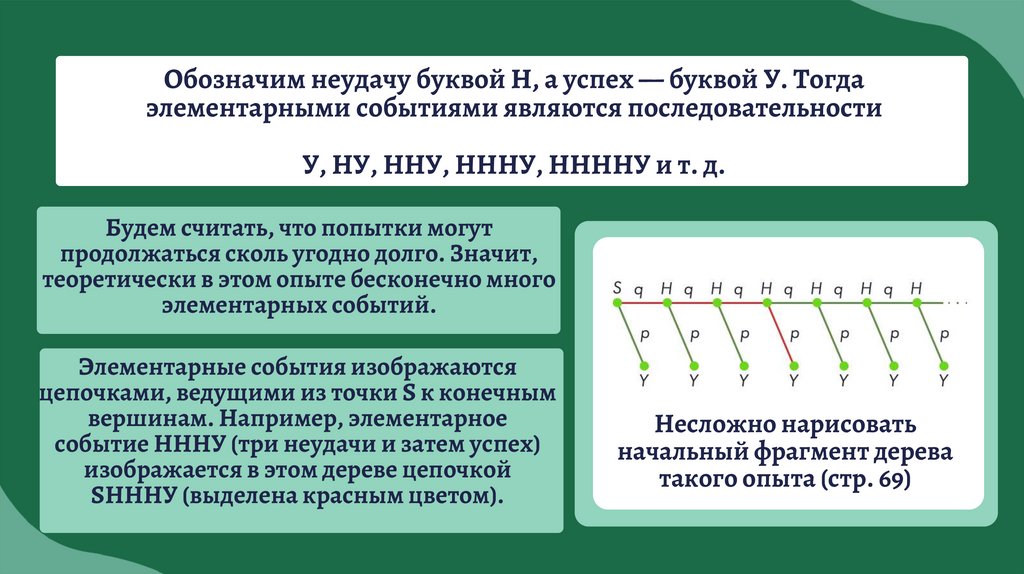 Обозначим неудачу буквой Н, а успех — буквой У. Тогдаэлементарными событиями являются последовательности
