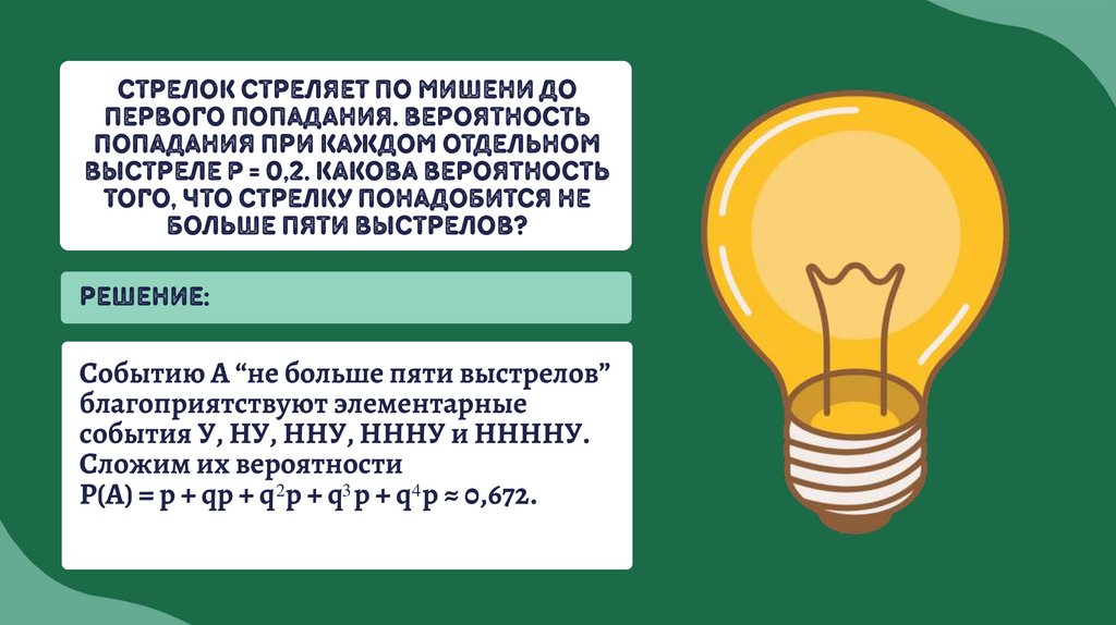 Стрелок стреляет по мишени допервого попадания. Вероятность