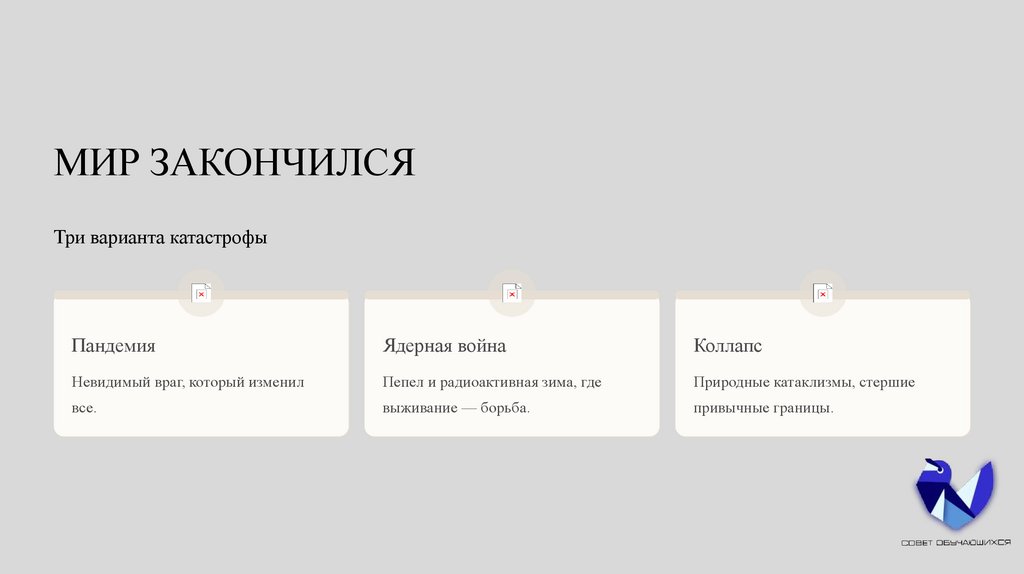 МИР ЗАКОНЧИЛСЯТри варианта катастрофы