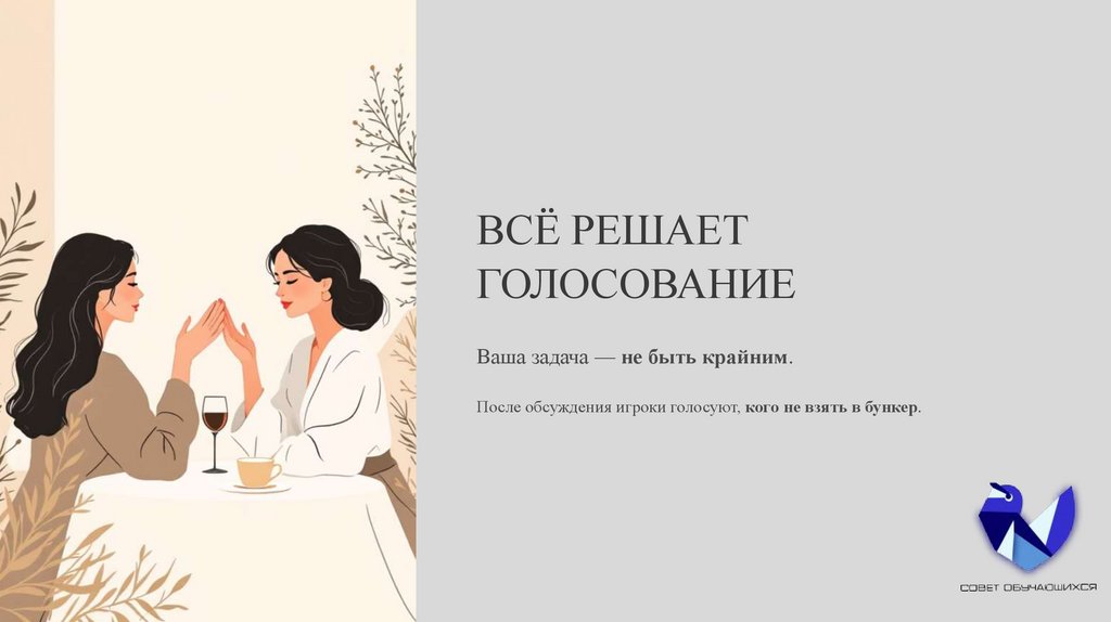 После обсуждения игроки голосуют, кого не взять в бункер.