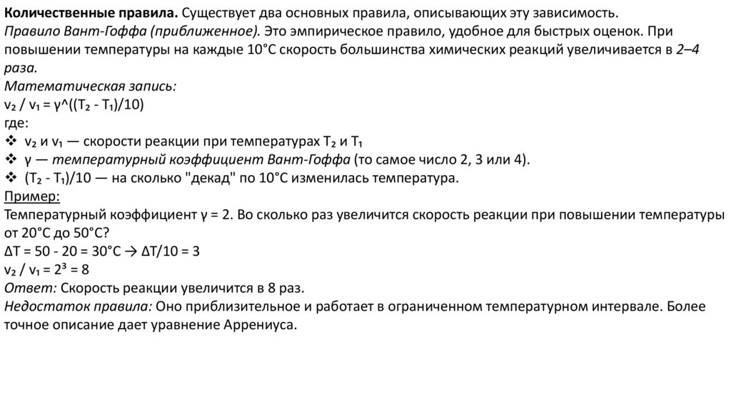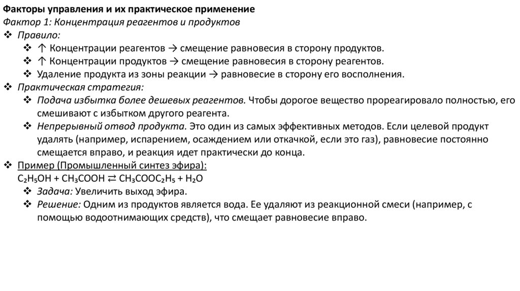 Факторы управления и их практическое применениеФактор 1: Концентрация реагентов и продуктов
