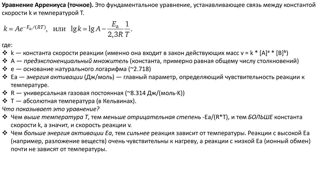 Энергия активации (Eа). Это самый важный параметр, определяющий скорость реакции. Энергия