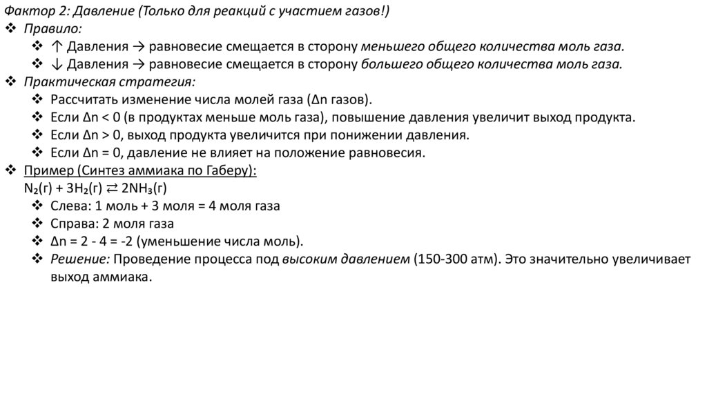 Фактор 2: Давление (Только для реакций с участием газов!)Правило:
