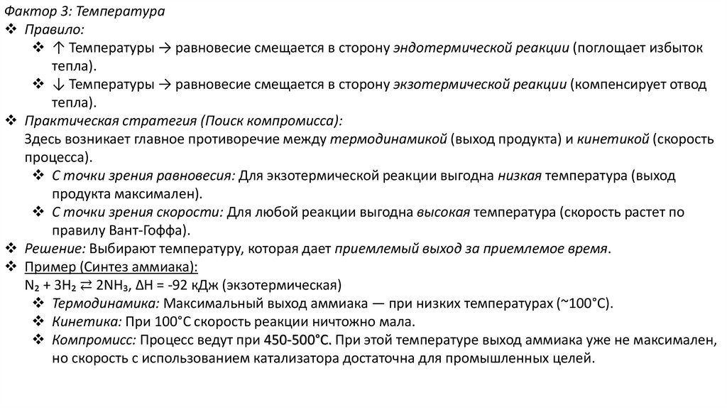 Здесь возникает главное противоречие между термодинамикой (выход продукта) и кинетикой (скорость