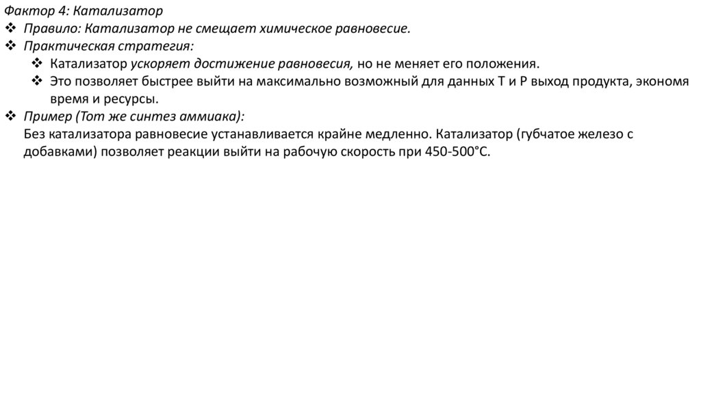Фактор 4: КатализаторПравило: Катализатор не смещает химическое равновесие.