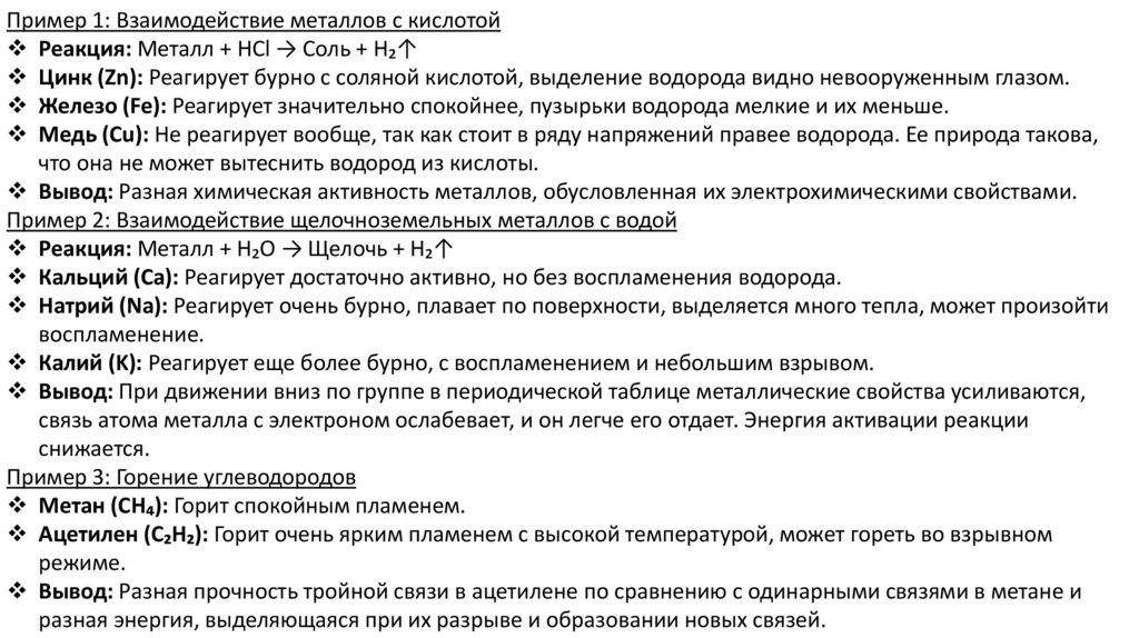Пример 1: Взаимодействие металлов с кислотойРеакция: Металл + HCl → Соль + H₂↑