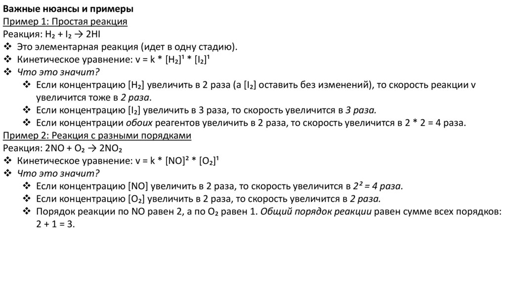 Кинетическое уравнение: v = k * [H₂]¹ * [I₂]¹