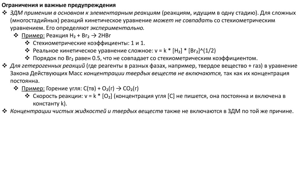 Формулировка: Скорость элементарной гомогенной химической реакции при постоянной температуре прямо