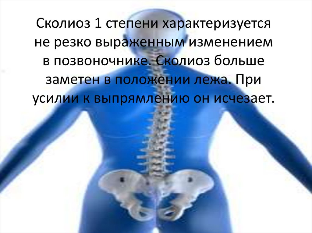 Сколиоз 1 степени характеризуетсяне резко выраженным изменением