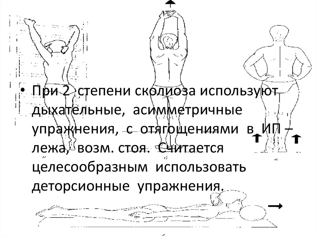 • При 2 степени сколиоза используютдыхательные, асимметричные