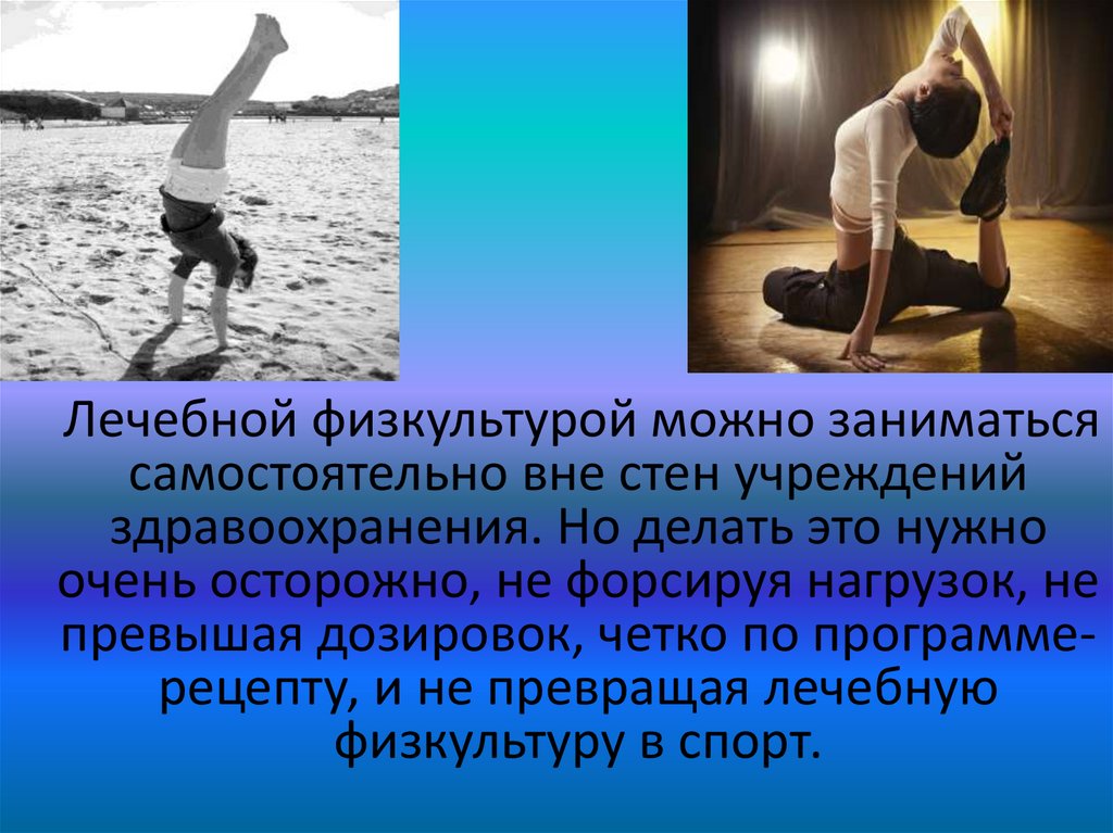 Лечебной физкультурой можно заниматьсясамостоятельно вне стен учреждений