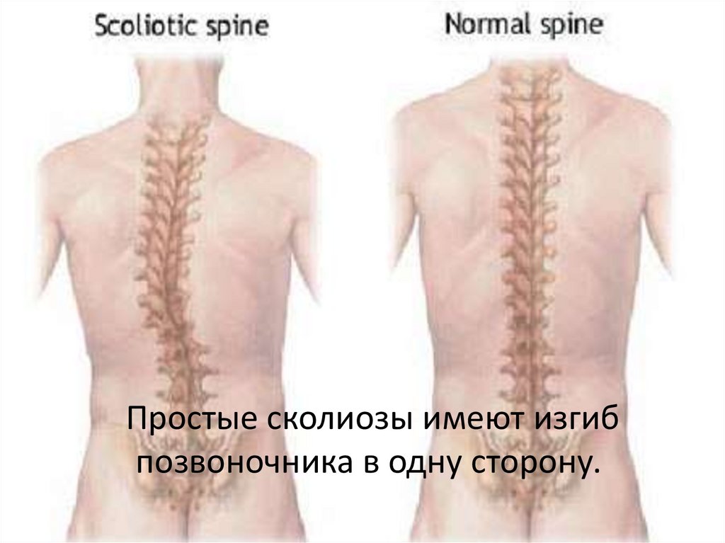 Простые сколиозы имеют изгибпозвоночника в одну сторону.