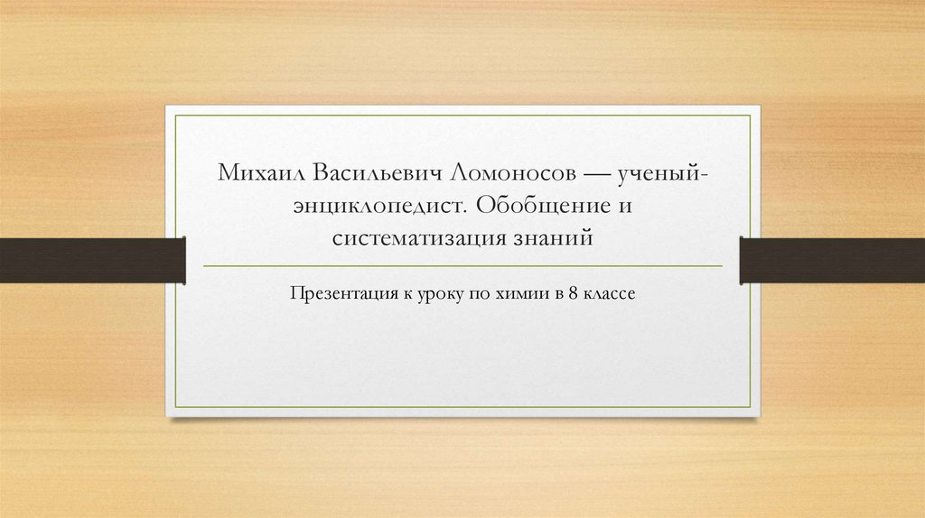 1. Михаил Васильевич Ломоносов — ученый-энциклопедист. Обобщение и систематизация знаний