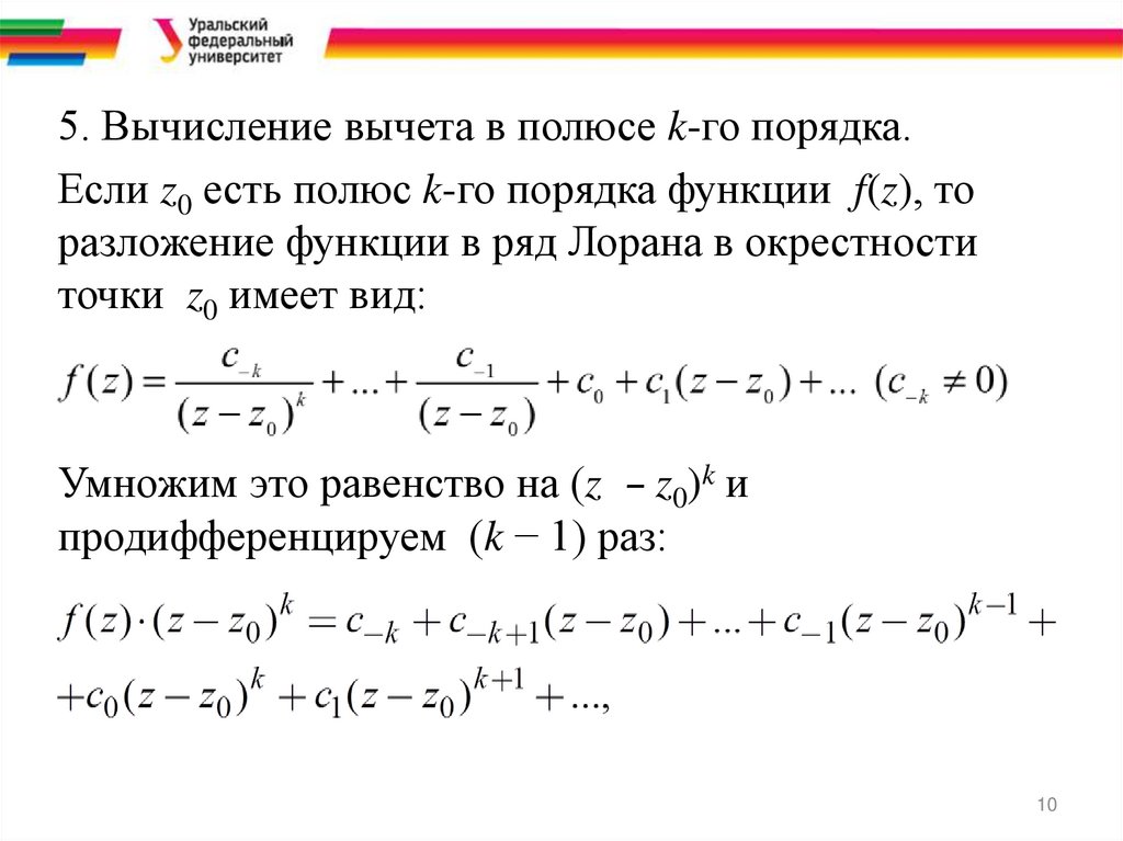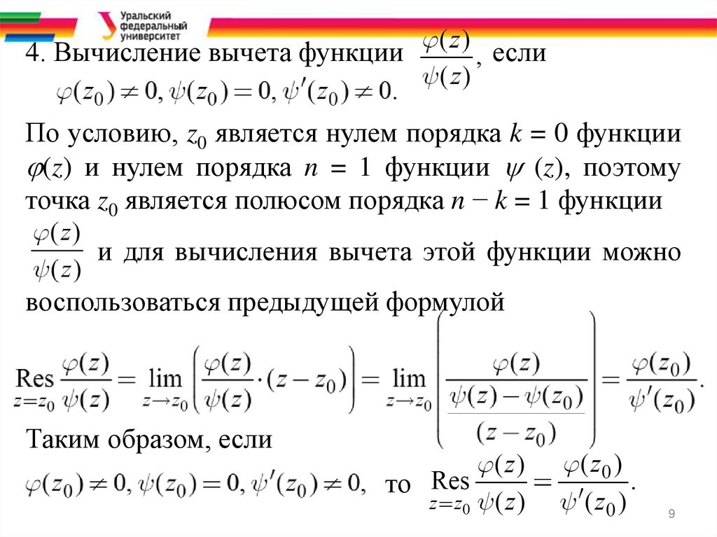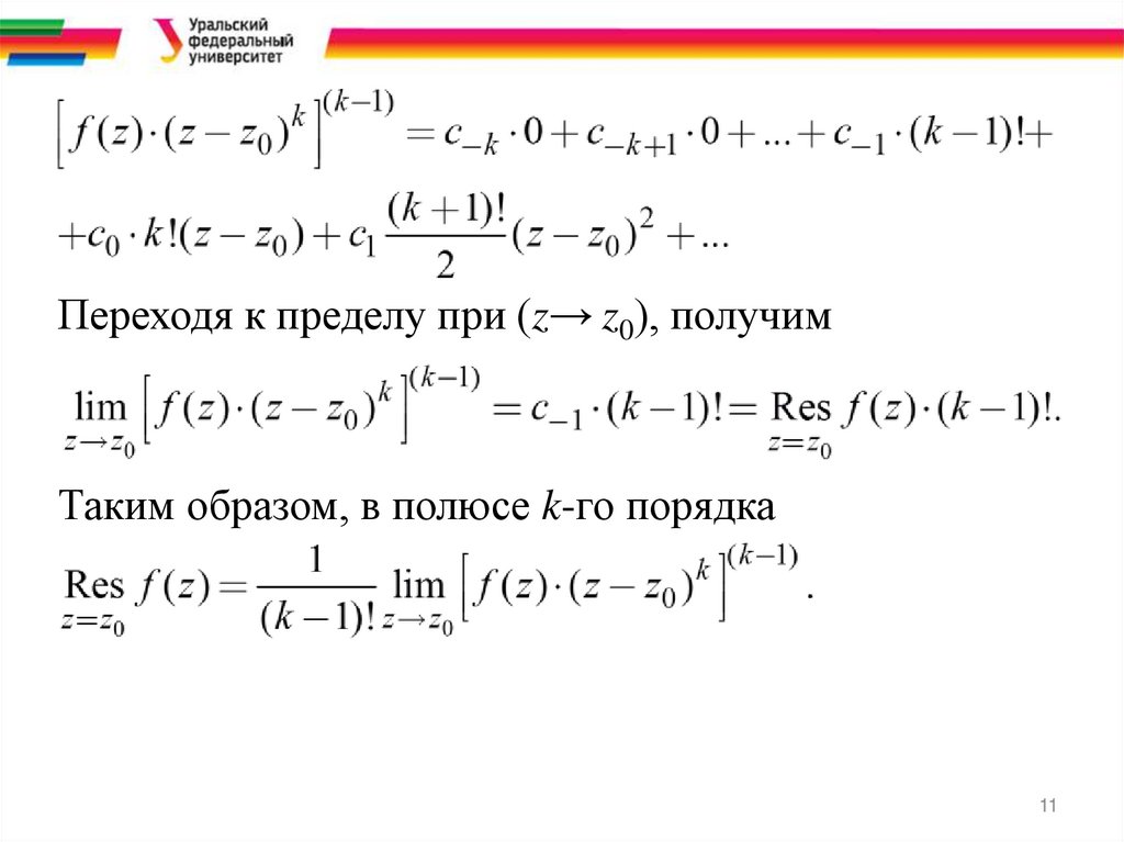 Переходя к пределу при (z→ z0), получимТаким образом, в полюсе k-го порядка