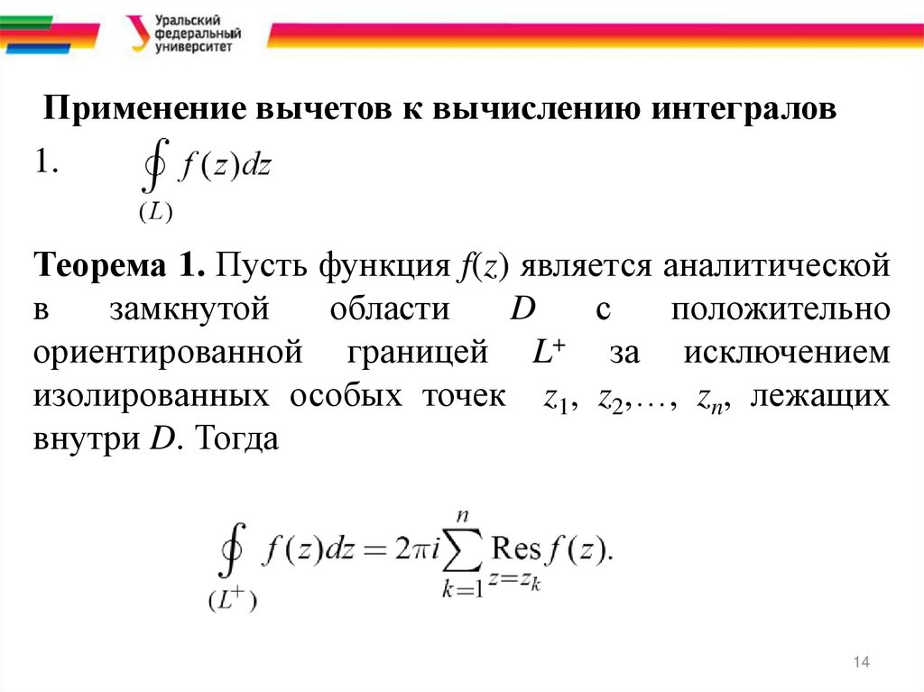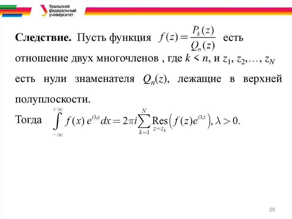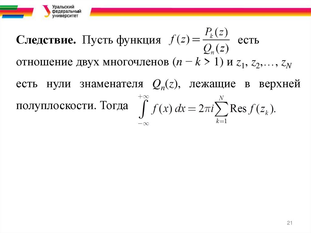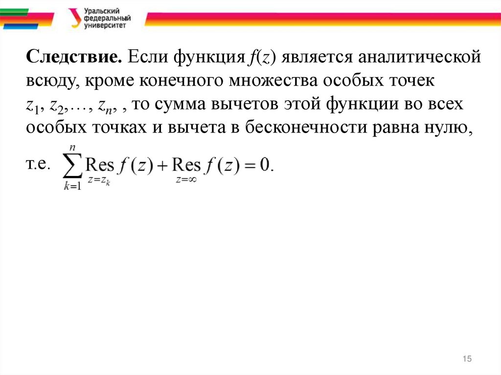 Следствие. Если функция f(z) является аналитическойвсюду, кроме конечного множества особых точек