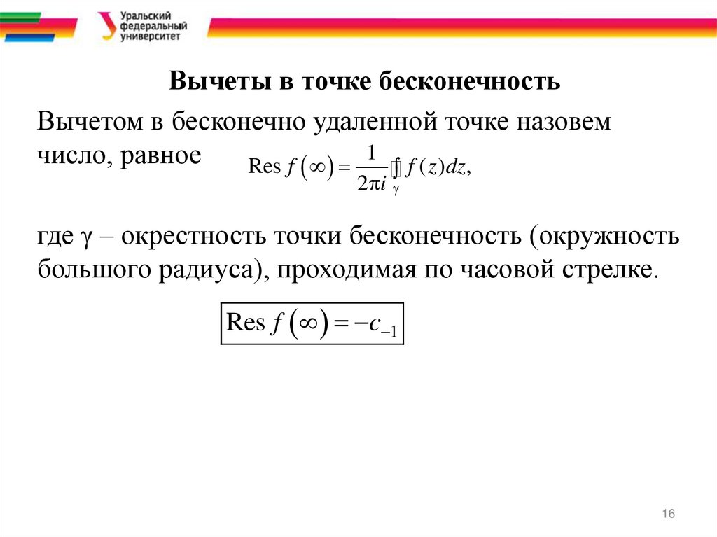 Вычеты в точке бесконечностьВычетом в бесконечно удаленной точке назовем