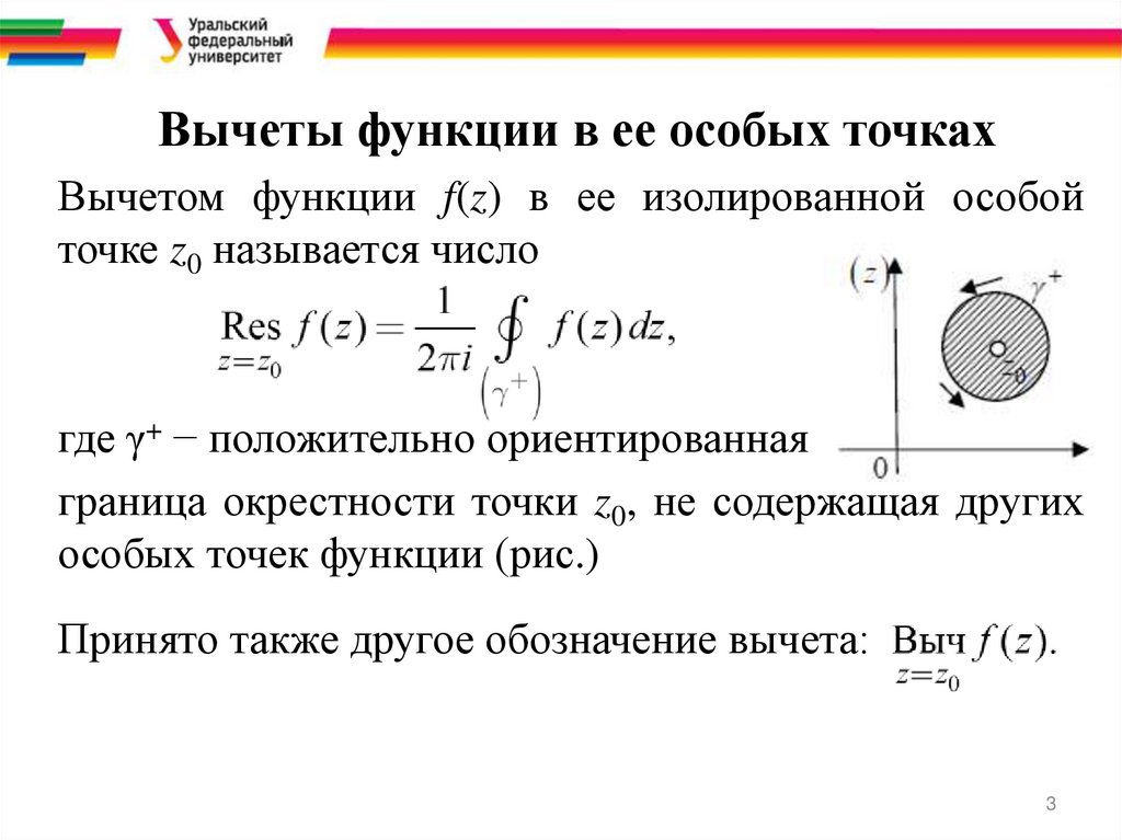 Вычеты функции в ее особых точкахВычетом функции f(z) в ее изолированной особой
