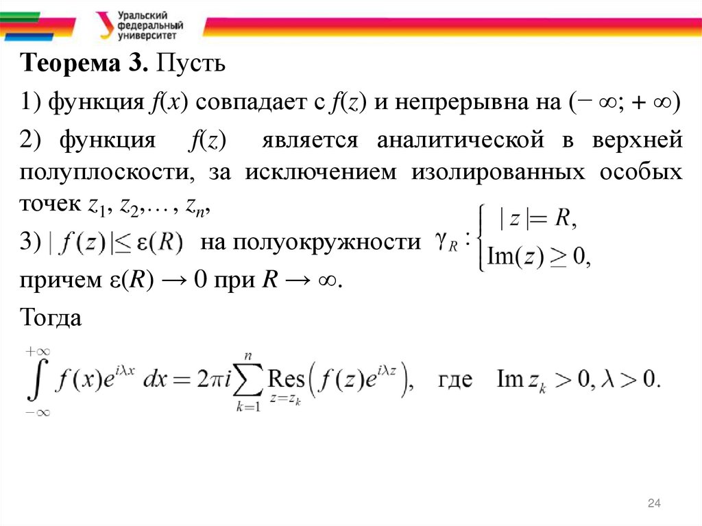 Теорема 3. Пусть1) функция f(x) совпадает с f(z) и непрерывна на (− ∞; + ∞)