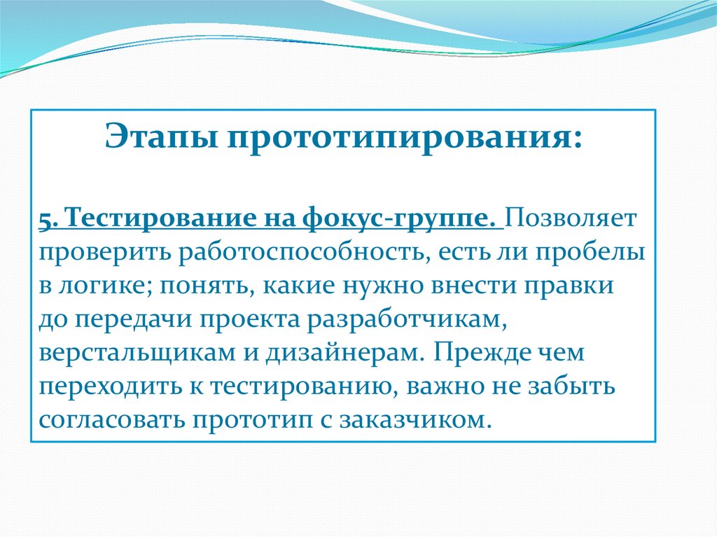 Этапы прототипирования:5. Тестирование на фокус-группе. Позволяет