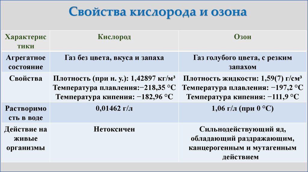 Свойства кислорода и озонаХарактерис
