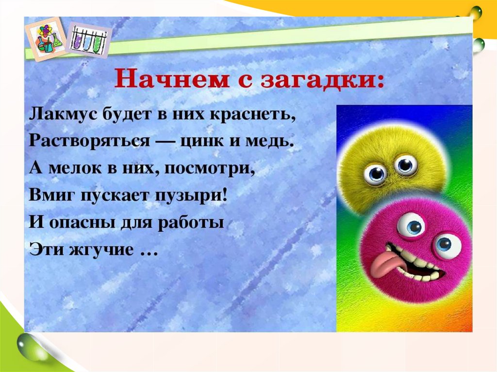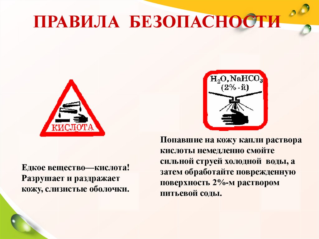 ПРАВИЛА БЕЗОПАСНОСТИЕдкое вещество—кислота!