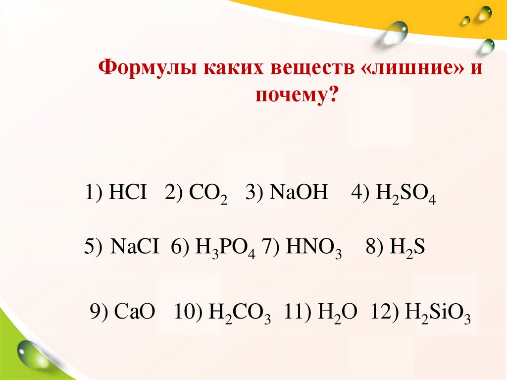 9) СаО 10) H2CO3 11) Н2О 12) Н2SiO3