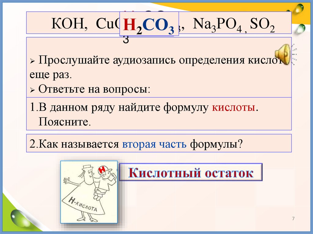 Кислоты – это сложные вещества, в составкоторых входят атомы водорода и