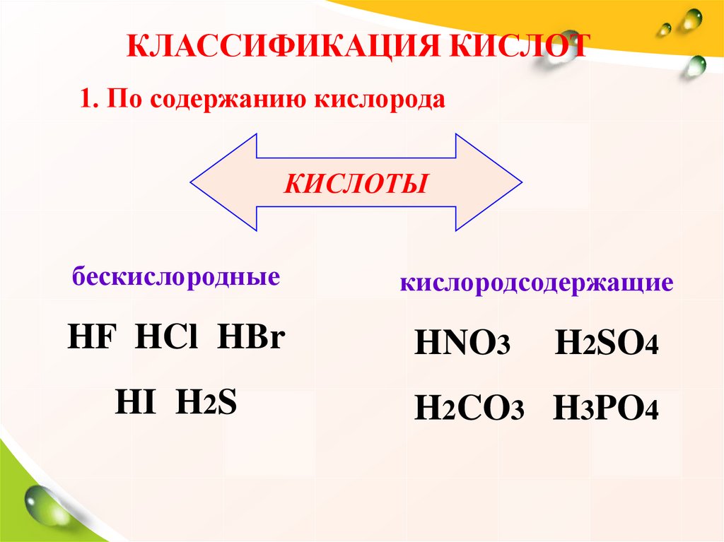 КЛАССИФИКАЦИЯ КИСЛОТ1. По содержанию кислорода