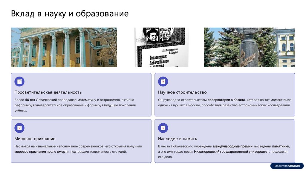 Вкл ад в науку и образованиеПросветител ь ская деят ел ь ность