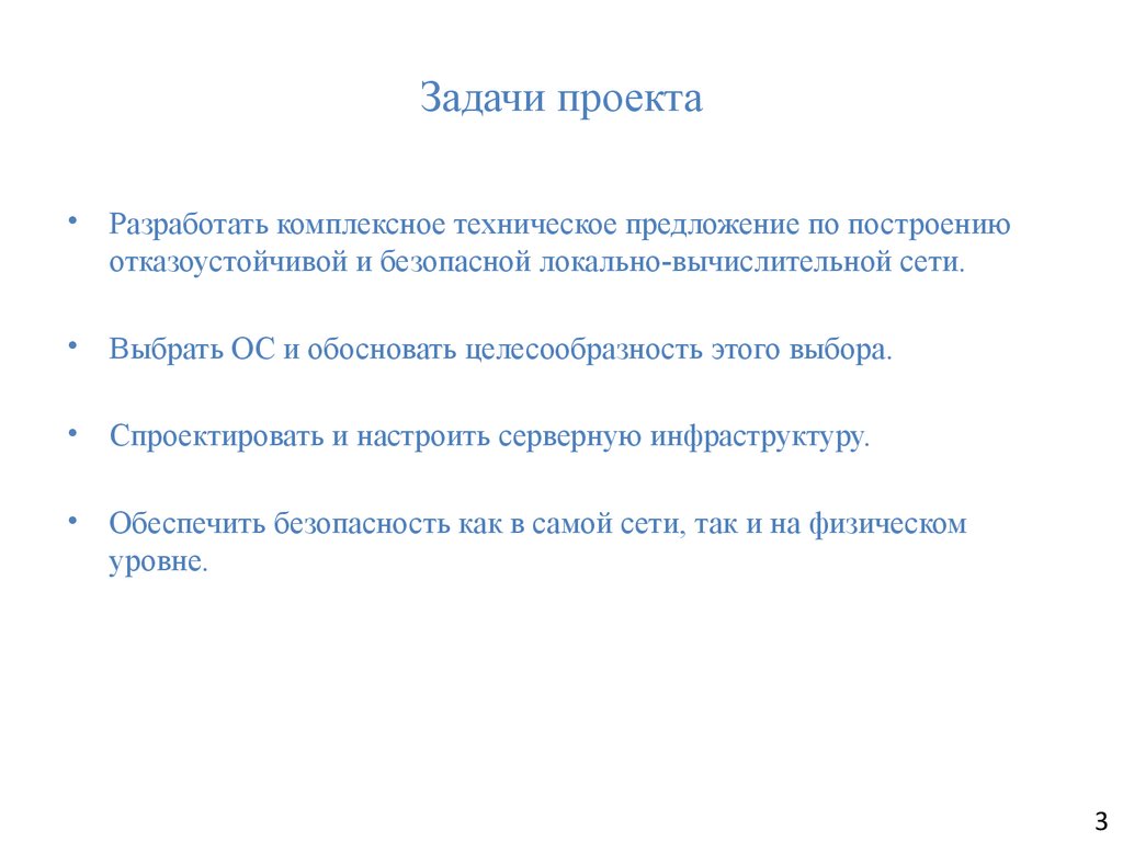 Задачи проекта• Разработать комплексное техническое предложение по построению