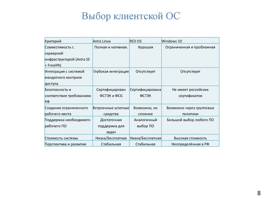 • Выбрать ОС и обосновать целесообразность этого выбора.