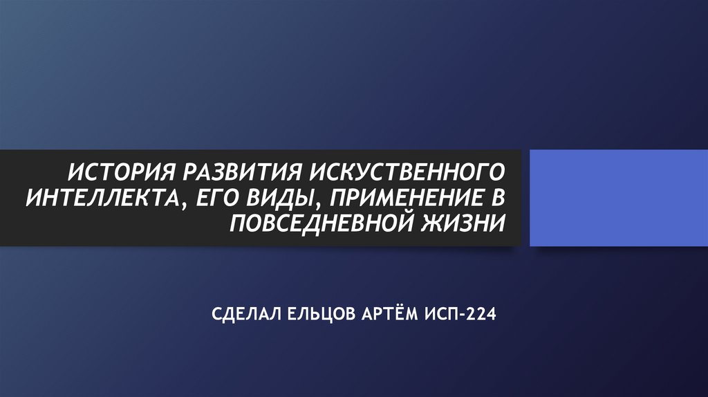1. ИСТОРИЯ РАЗВИТИЯ ИСКУСТВЕННОГО ИНТЕЛЛЕКТА, ЕГО ВИДЫ, ПРИМЕНЕНИЕ В ПОВСЕДНЕВНОЙ ЖИЗНИ