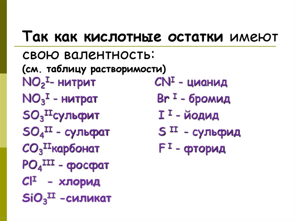 Пример: Составить химическуюформулу сульфата железа (III )..