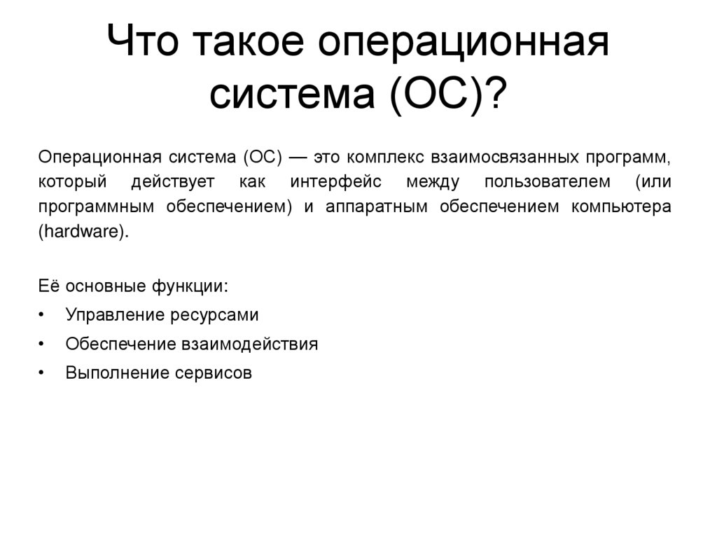 Операционная система (ОС) — это комплекс взаимосвязанных программ,