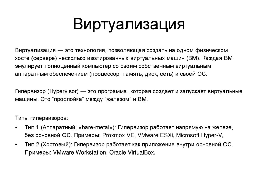 Гипервизор (Hypervisor) — это программа, которая создает и запускает виртуальные
