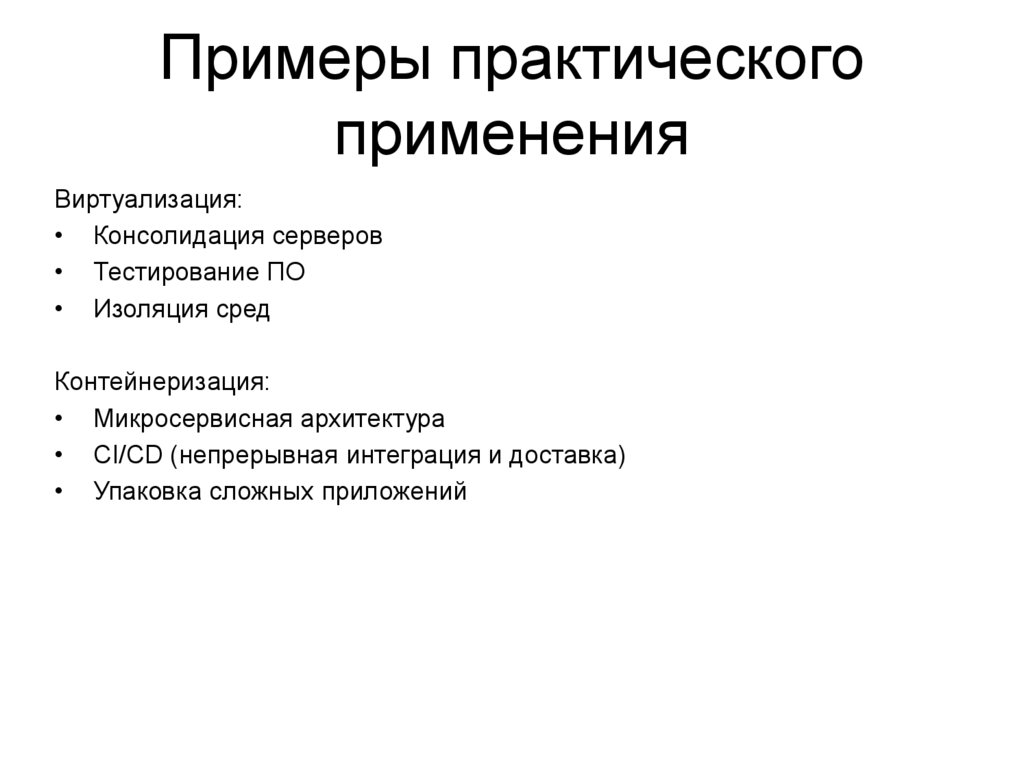 Контейнеры: микросервисы, быстрая доставка, плотная упаковка приложений.